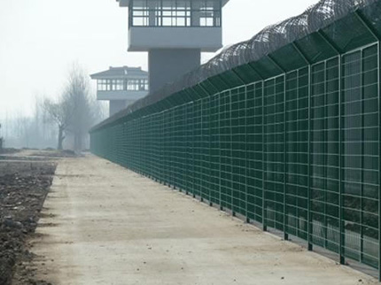 監獄圍欄主要是采用高強度的刀片刺網與普通防護網的結合,由V型支架立拄,加強型焊接片網,安全防盜連接件和刀片刺網組成.刀片刺網是一種新型防護網,由銳利尖角鍍鋅鋼板或不銹鋼薄板做刀片,鋼絲做芯線組合而成的防護器材。