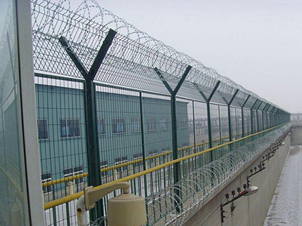 監(jiān)獄護(hù)欄網(wǎng)又稱作“Y型安全防御護(hù)網(wǎng)”監(jiān)獄鋼網(wǎng)墻,是由V型支架立柱,加強(qiáng)型焊接片網(wǎng),安全防盜連接件和熱鍍鋅刀片刺籠組成強(qiáng)度和安全防御性級(jí)別很高,近年來,被廣泛應(yīng)用在監(jiān)獄,機(jī)場(chǎng),軍事基地等高安全場(chǎng)所。